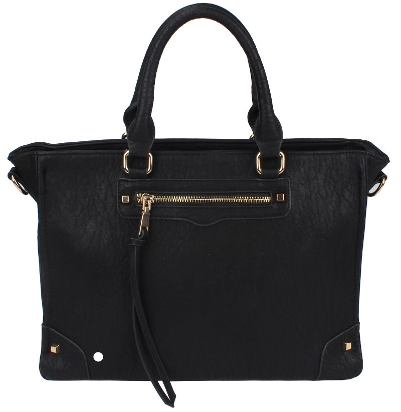 Take style to the next level with the Kelly Faux Leather Satchel. Crafted with textured leather and accented with gold hardware, this bag is both luxurious and practical. The front zip pocket adds a touch of edginess while the crossbody strap and top handles provide versatility. Make a statement with this must-have accessory.