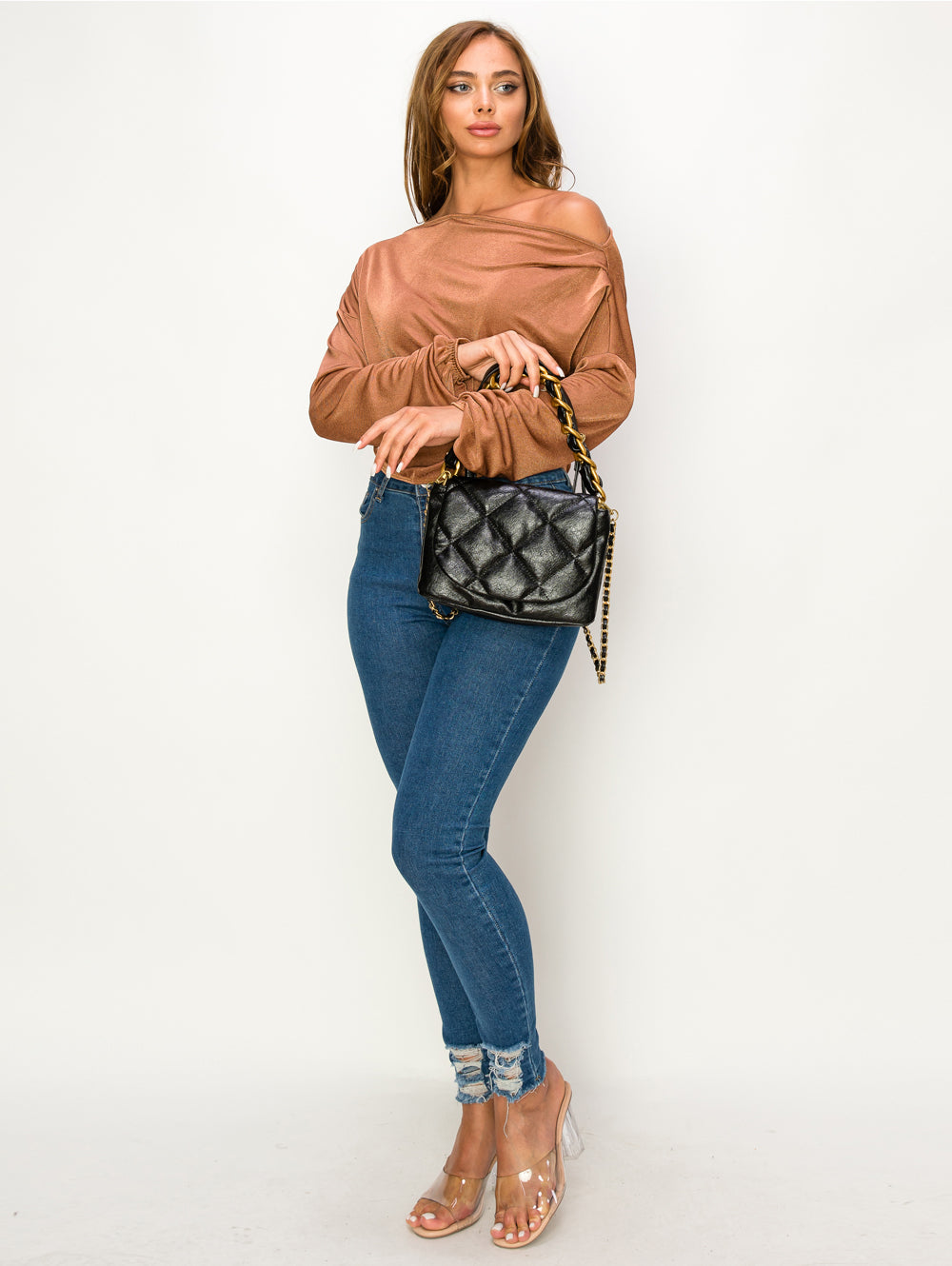 Introducing the Maddie Bag, the perfect blend of style and functionality. With diamond quilted leather, a double compartment interior, and a versatile woven chain handle, this bag is a must-have for any fashion-forward individual. Carry it as a shoulder bag or crossbody for effortless, chic convenience.