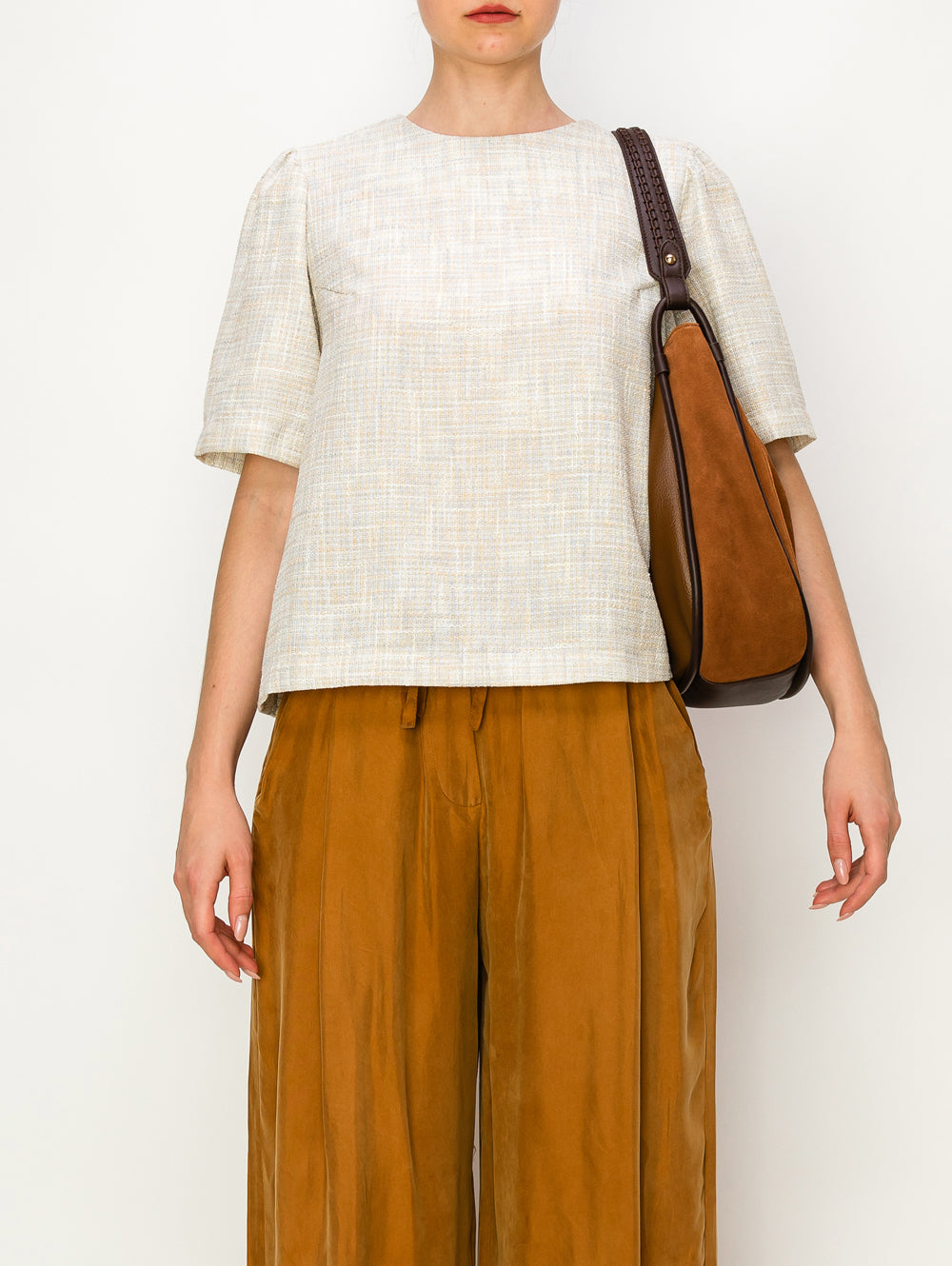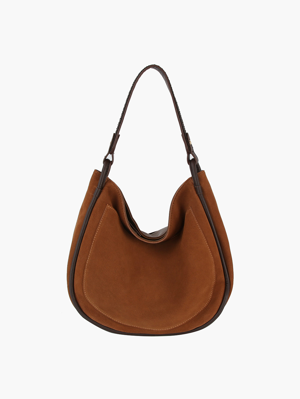 This crescent-shaped shoulder bag is perfect for work, errands, and everyday use. It features a removable crossbody strap and a braided top handle for convenience and style. With a roomy interior and trendy design, it's a must-have for any fashion-forward individual.